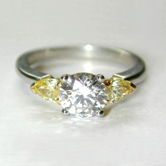 Platinum ring set with a round brilliant cut diamond and 2 pear cut natural fancy yellow diamonds Platinum ring set with a round brilliant cut diamond and 2 pear cut natural fancy yellow diamonds